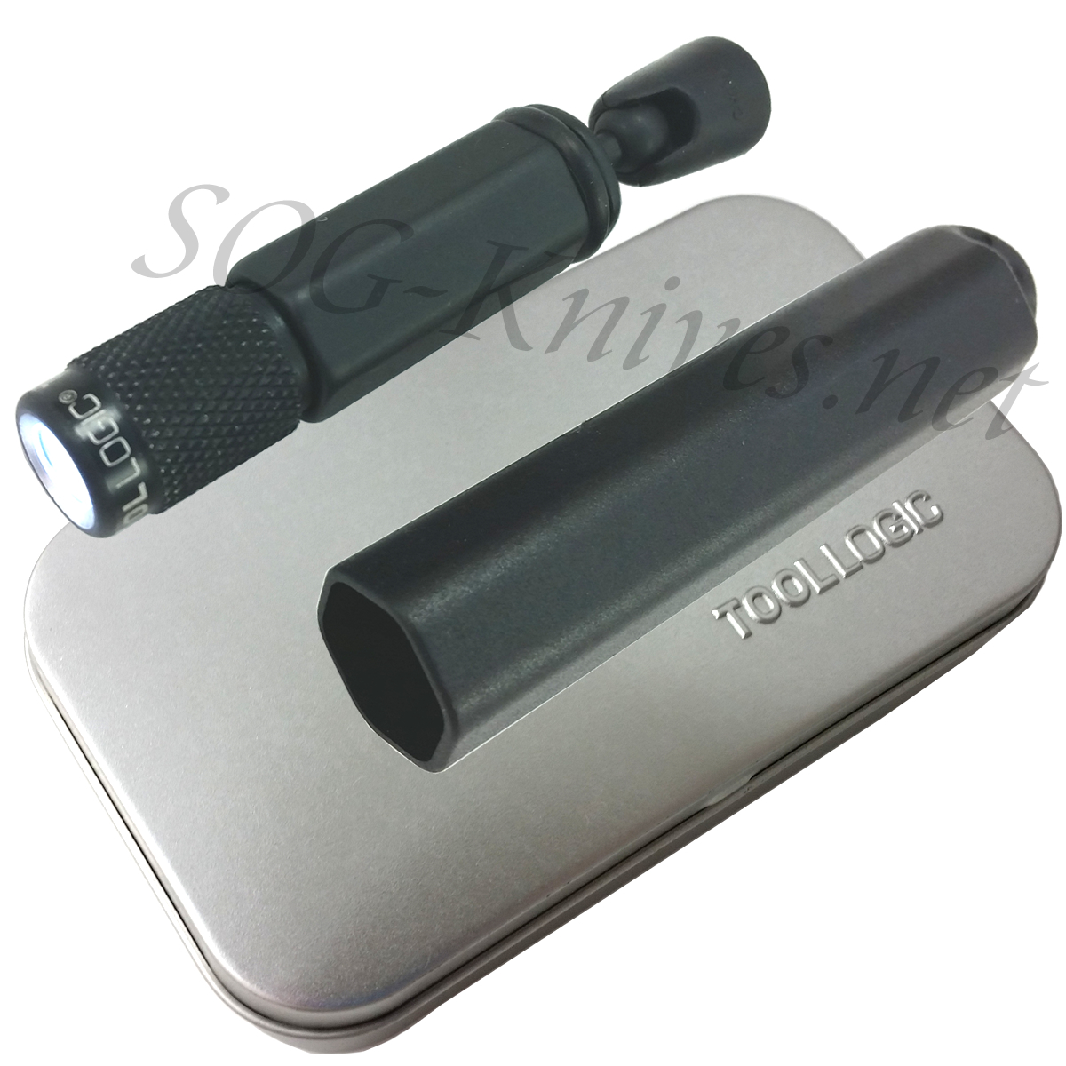 The Tool Logic Hands-Free Magnetic LED Flashlight model KSLP1-T is perfect for when you find yourself needing light in confined spaces. The magnet on the end of the light allows it to attach to ferrous metals. Work wherever you need to work without worrying about holding the light. Rotate the light in its pivot and point it in any direction. The magnet also doubles as a magnetic pick-up for picking up small metal objects. The Tool Logic KSLP1 attaches easily to your keychain and does not take up much space. Comes with a silver gift tin- the ones we have left will have rust spots all over the tin. It has been in the ware house that is hot and has turned, so the tool is brand new and never been used but the tin does show much wear. Batteries are NOT INCLUDED.